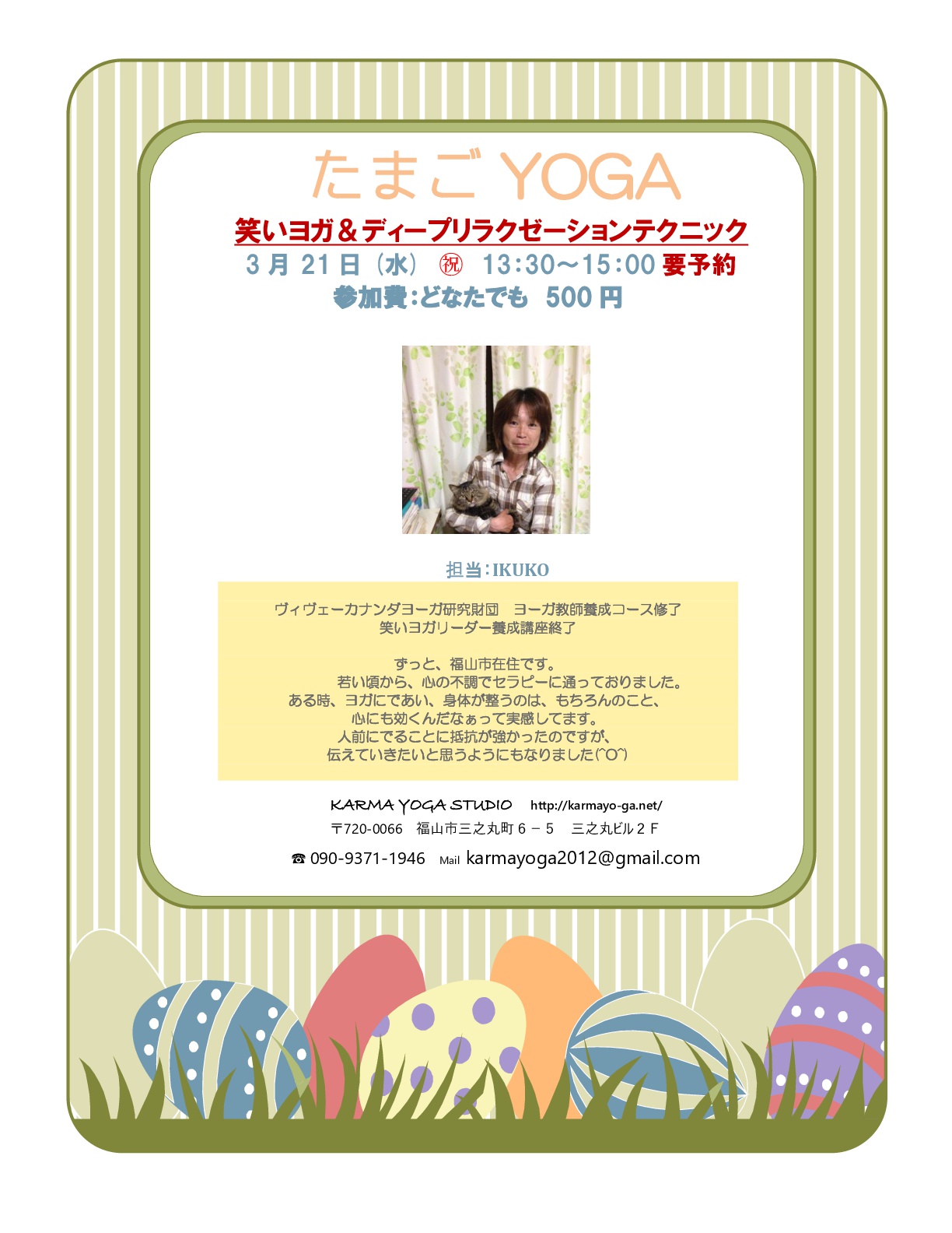 2018/01/282018年3月21日(水)㊗13:30~15:00 ヨガティーチャーのたまごがリードす... 続きを読む