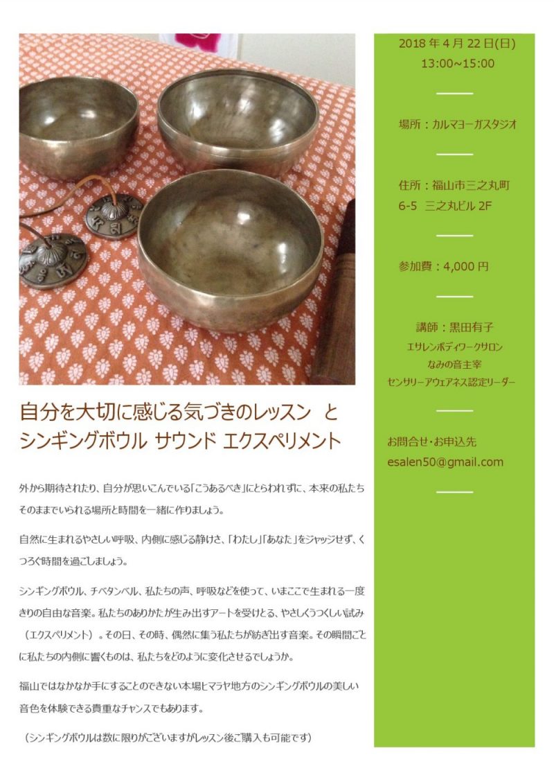 2018/02/03自分を大切に感じる気づきのレッスン と シンギングボウル サウンド エクスペリメント ... 続きを読む