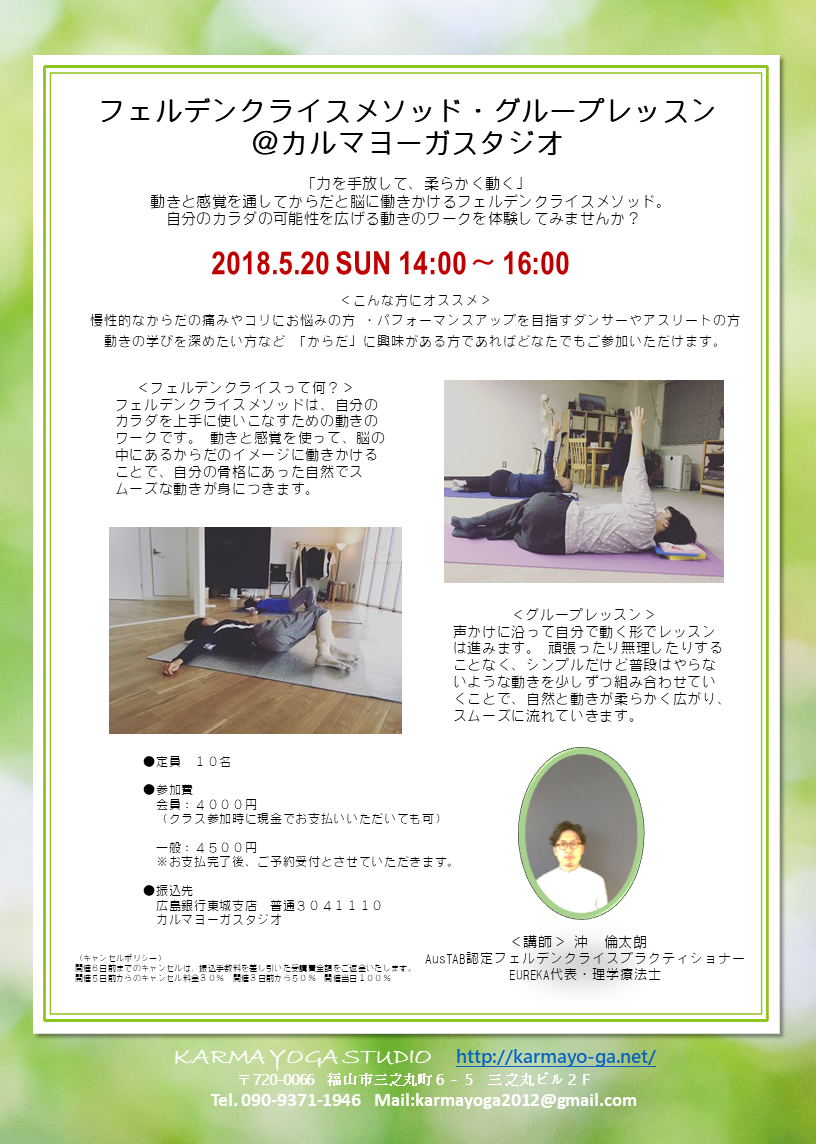 2018/02/062018年5月20日(日)14:00~16:00 フェルデンクライスメソッド・グループレッスン@カル... 続きを読む