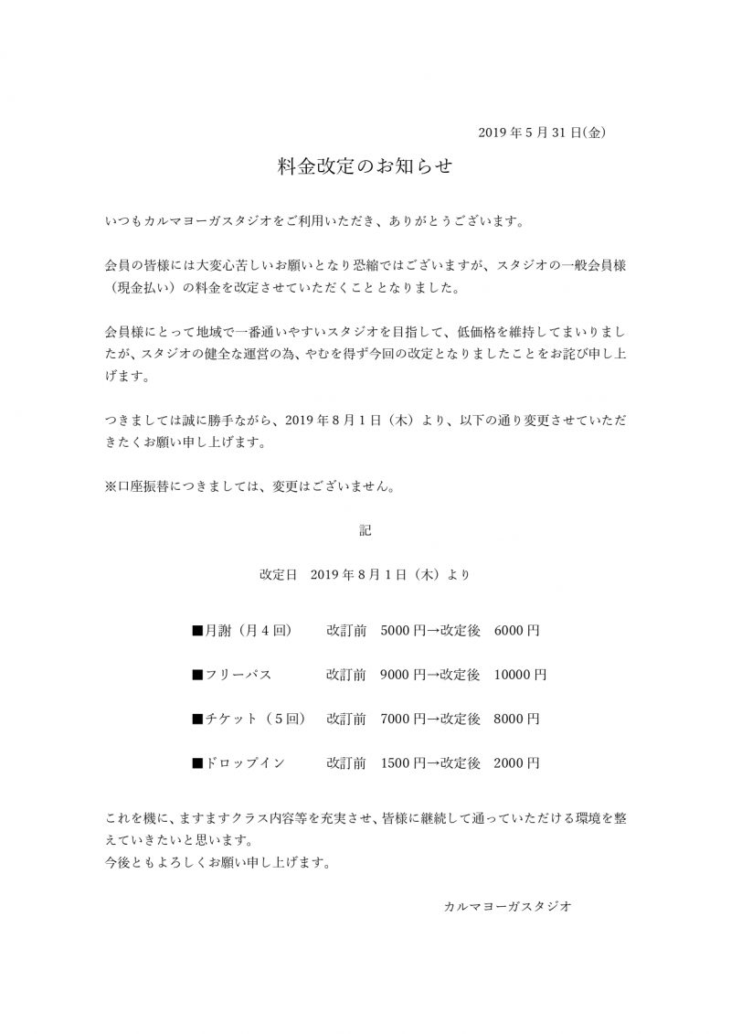 まず8月1日より、現金会員様の料金を改定させていただくことになりました。