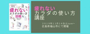 『疲れないカラダの使い方図鑑』の著者であり、アレクサンダー・テクニーク教師でもある木野村朱美さんをお迎えして、読書会&体験会をベースとした講座を福山市、府中市(広島県)にて初開催いたします。 &nb … 続きを読む ※キャンセル待ちです。11月16日(土)疲れない身体の使い方講座 アレクサンダーテクニーク教師 木野村朱美さん