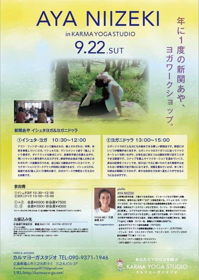 2018/07/15AYA NIZEKI 9.22 in KARMA YOGA STUDIO イシュタヨガ... 続きを読む