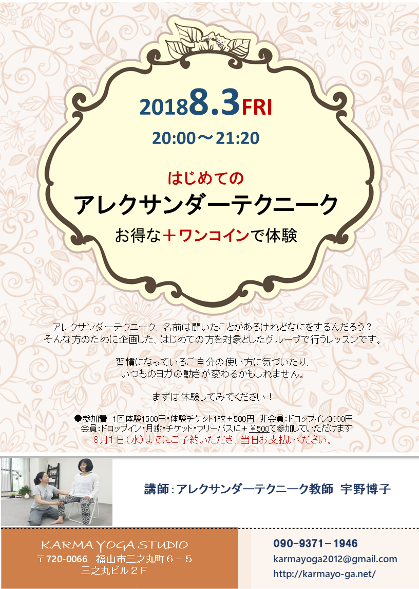 2018/07/15アレクサンダーテクニーク、名前は聞いたことがあるけれどなにをするんだろう? そんな方の... 続きを読む